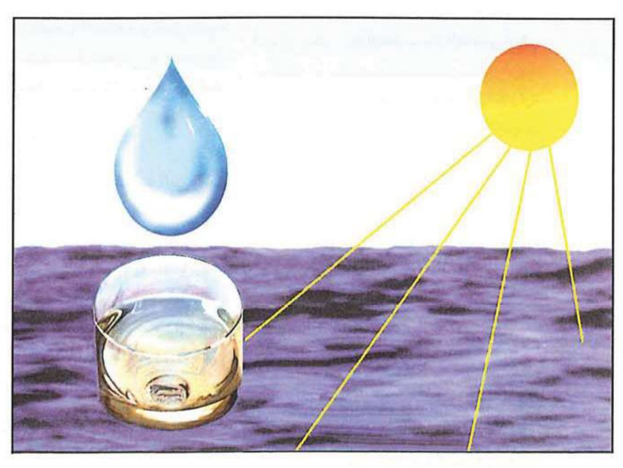 (في دورة التبريد) الحرارة اللازمة للتبخير في مياه البحار والتى تبرد بذلك وتنخفض درجة حرارتها كلما استمر التقاؤها بالأنابيب الحاملة